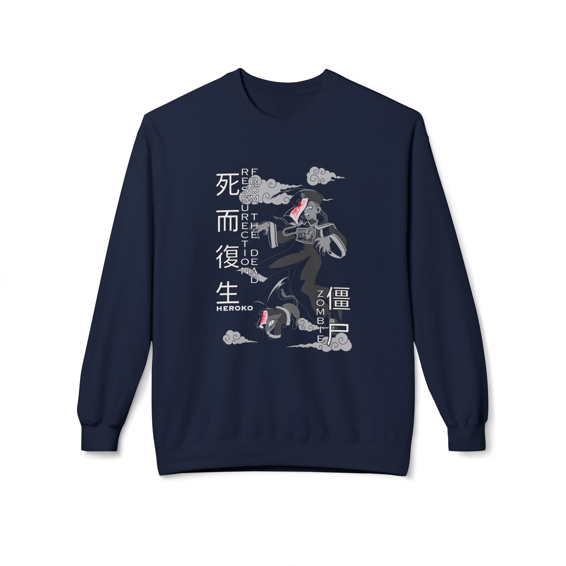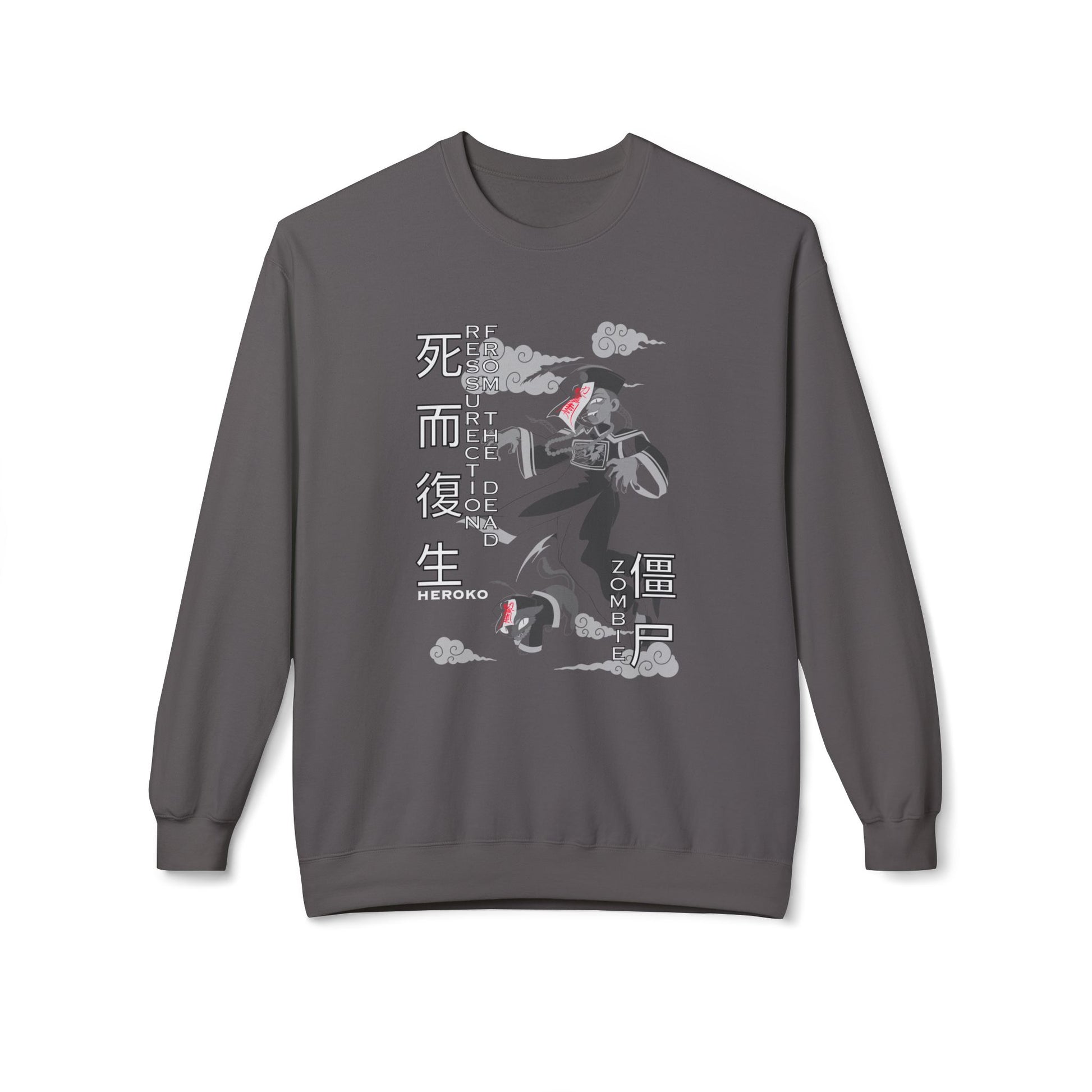 Halloween Unisex Crewneck Sweatshirt, Chinese Ancient Zombies B&W Design