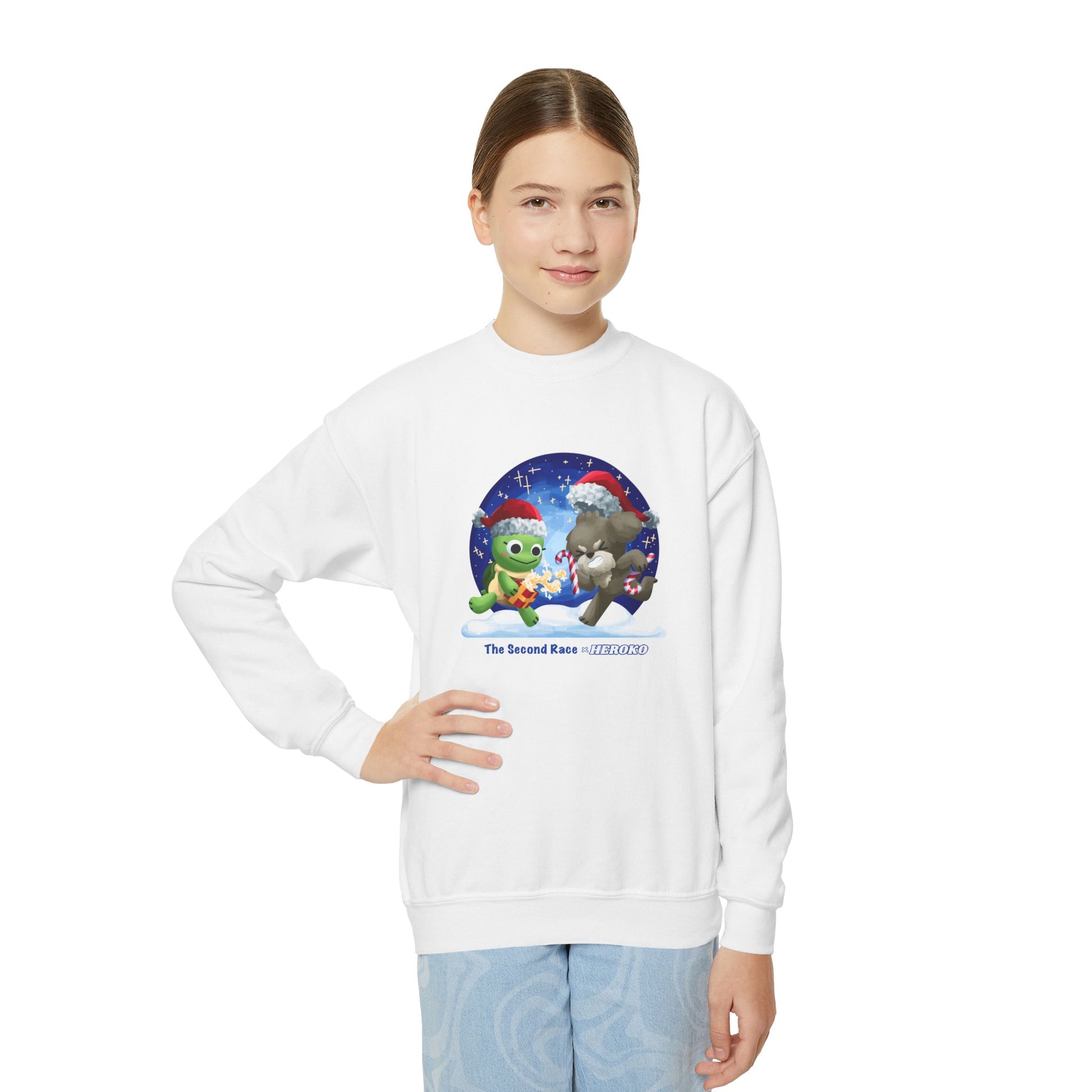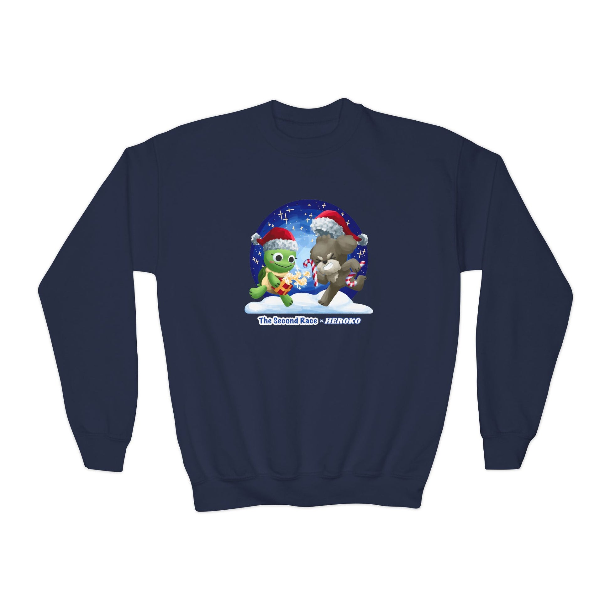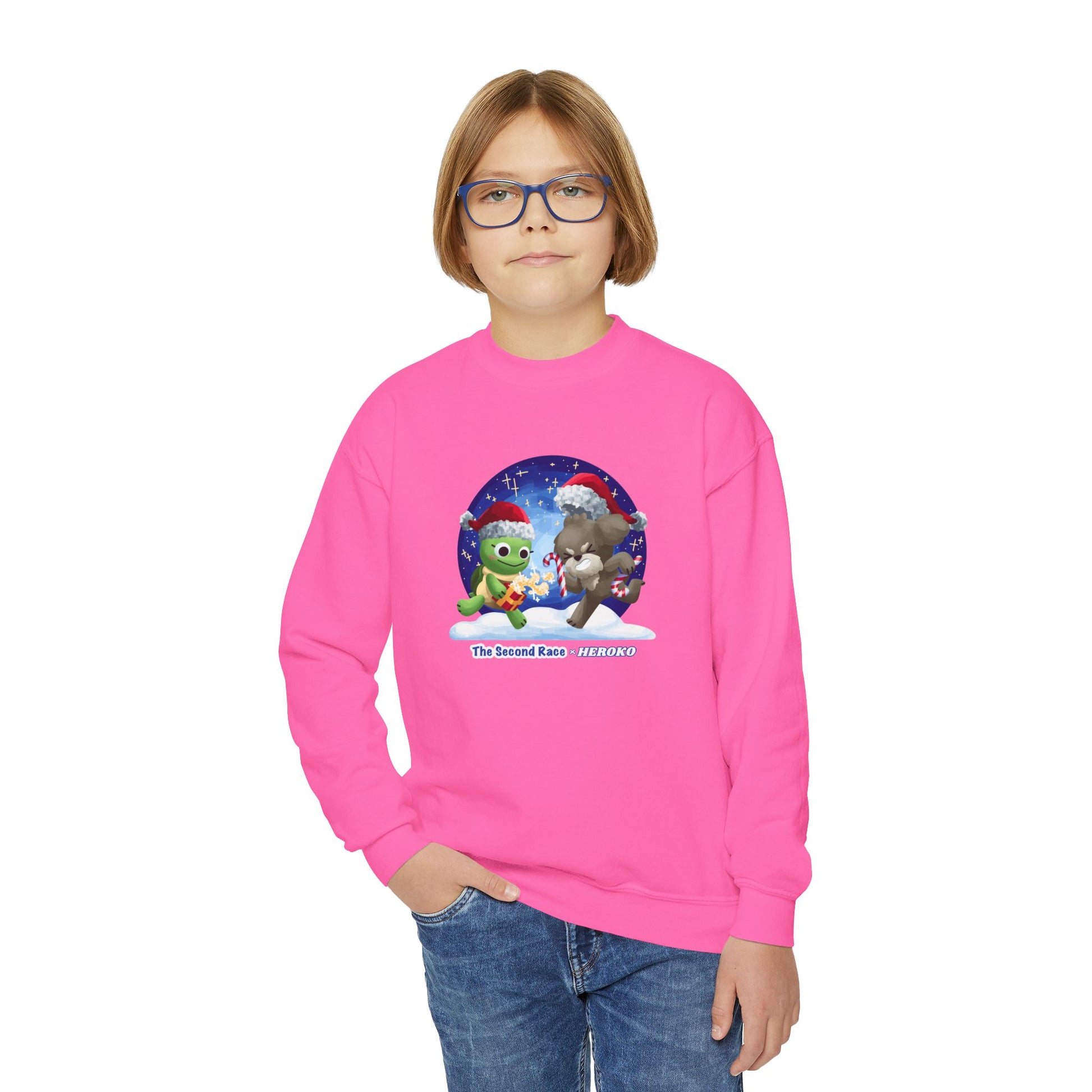 This Youth Crewneck Sweatshirt features a charming design of The Second Race Turtle and Puppy, making it perfect for the holiday season. The cozy sweatshirt is ideal for children and offers a loose fit for maximum comfort. It is made from a blend of 50% cotton and 50% polyester, ensuring durability and softness. With embroidery decoration options available, this sweatshirt is a festive and stylish addition to any kid's wardrobe.