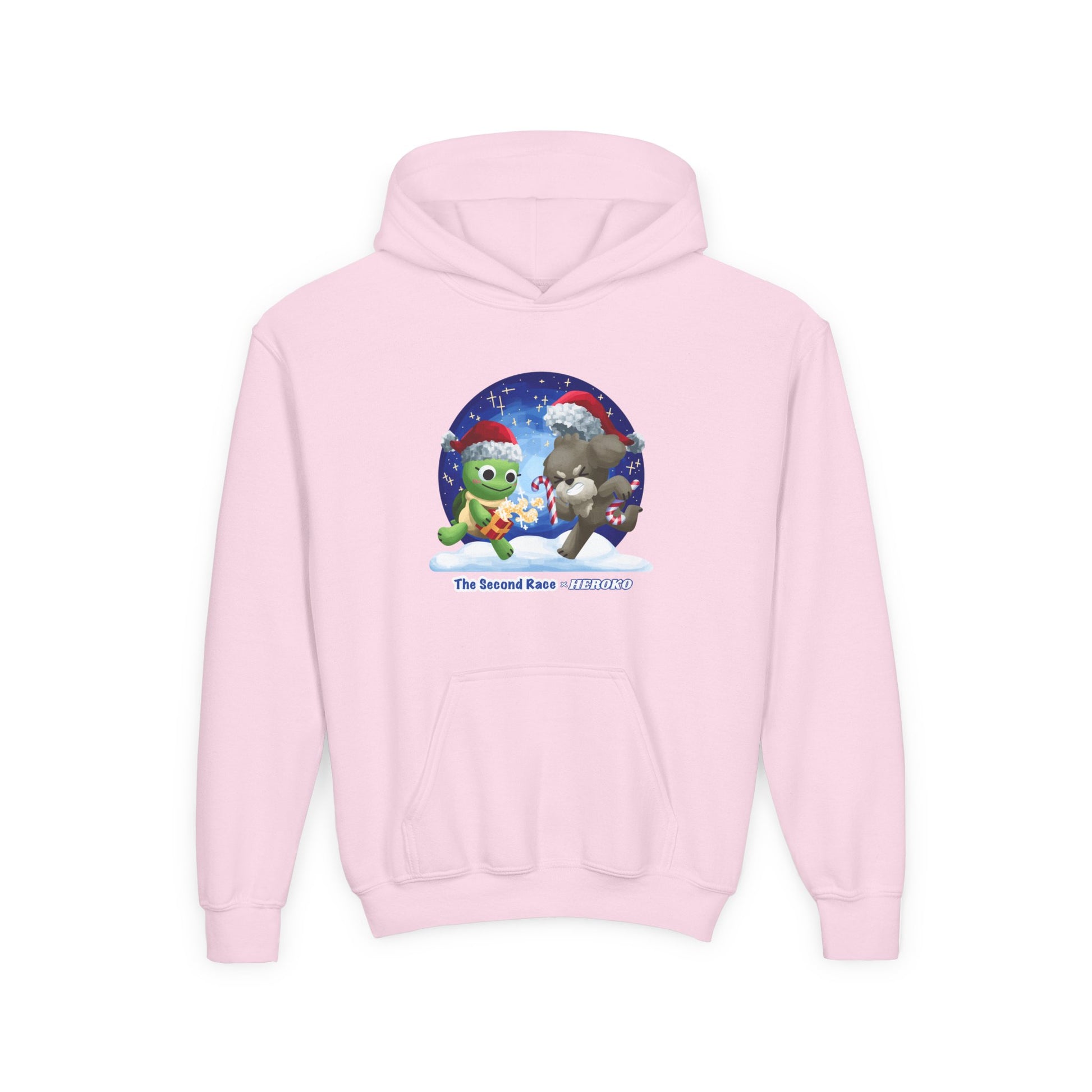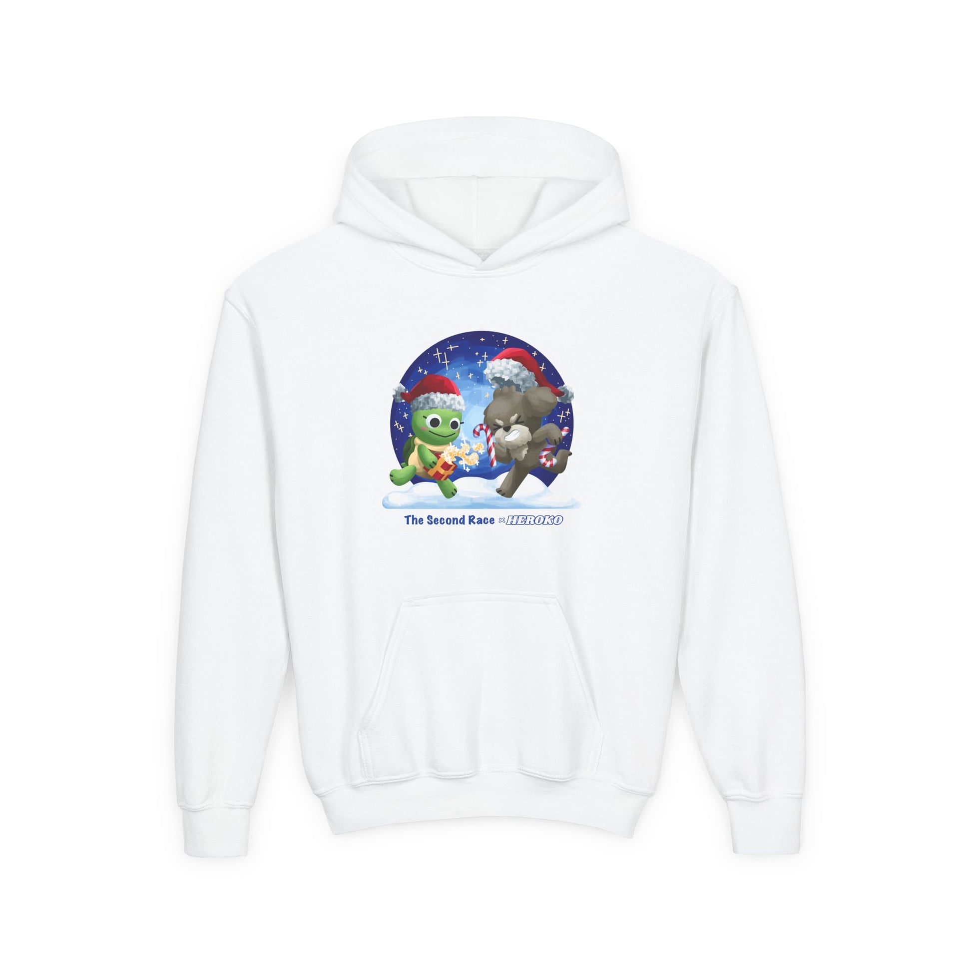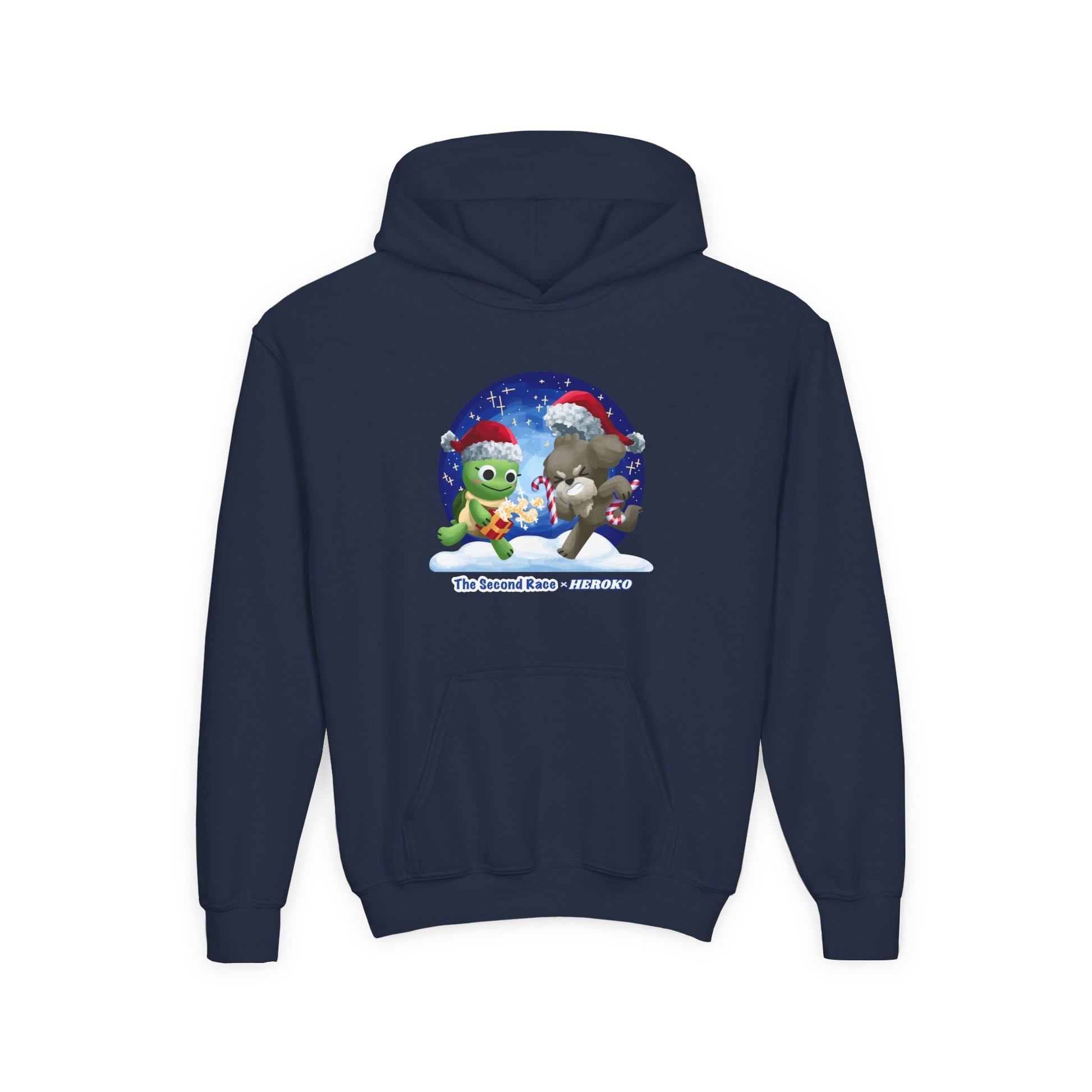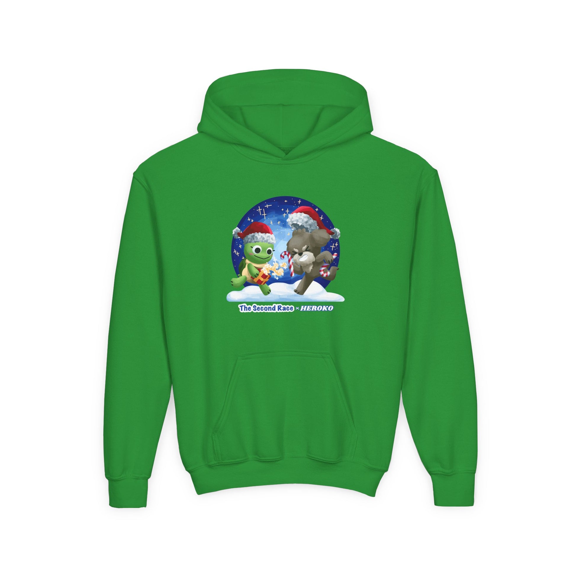 Kids Holiday Hoodie — Cute Christmas Turtle and Puppy Friends "The Second Race"