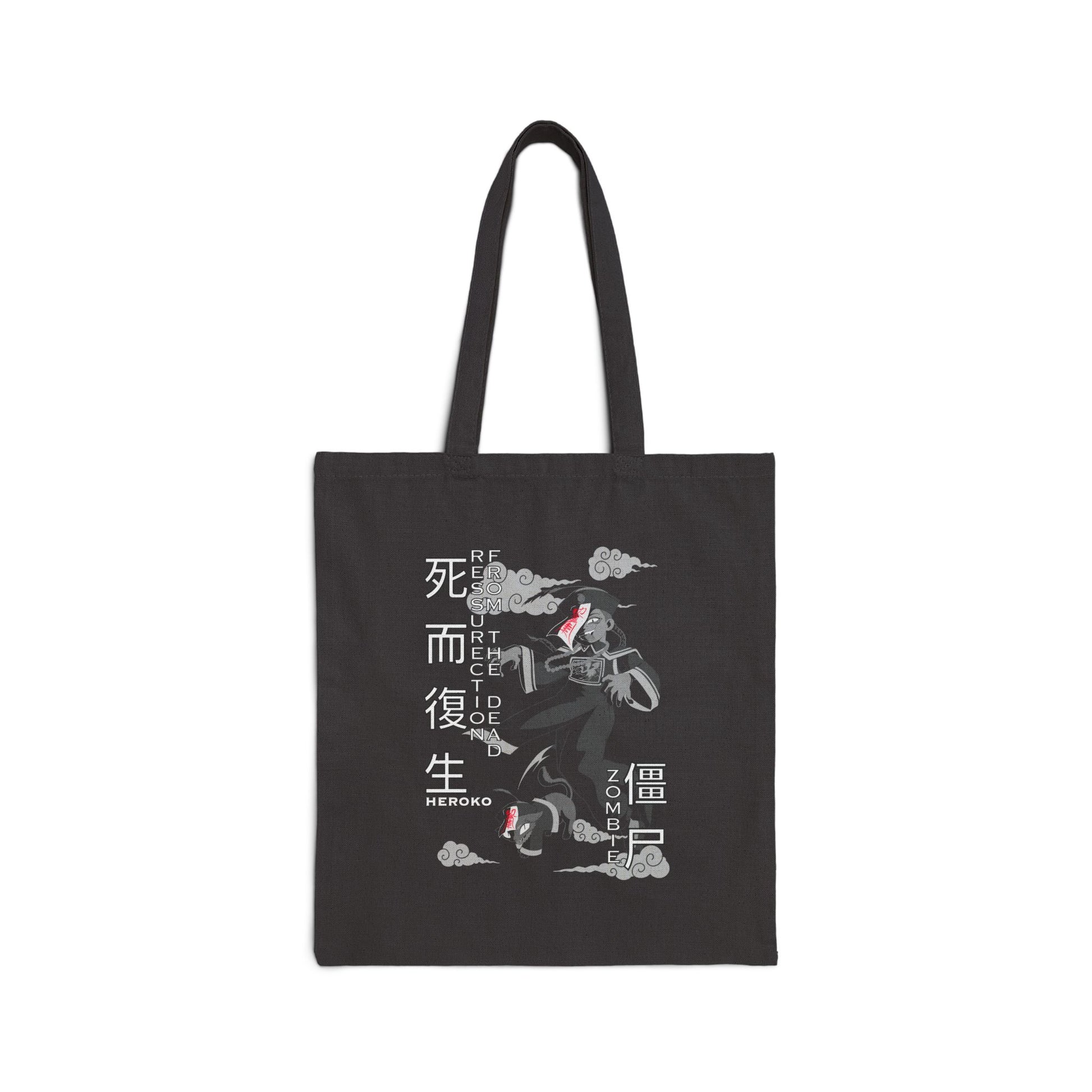 Spooky Canvas Tote Bag, Chinese Ancient Zombies B&W Design