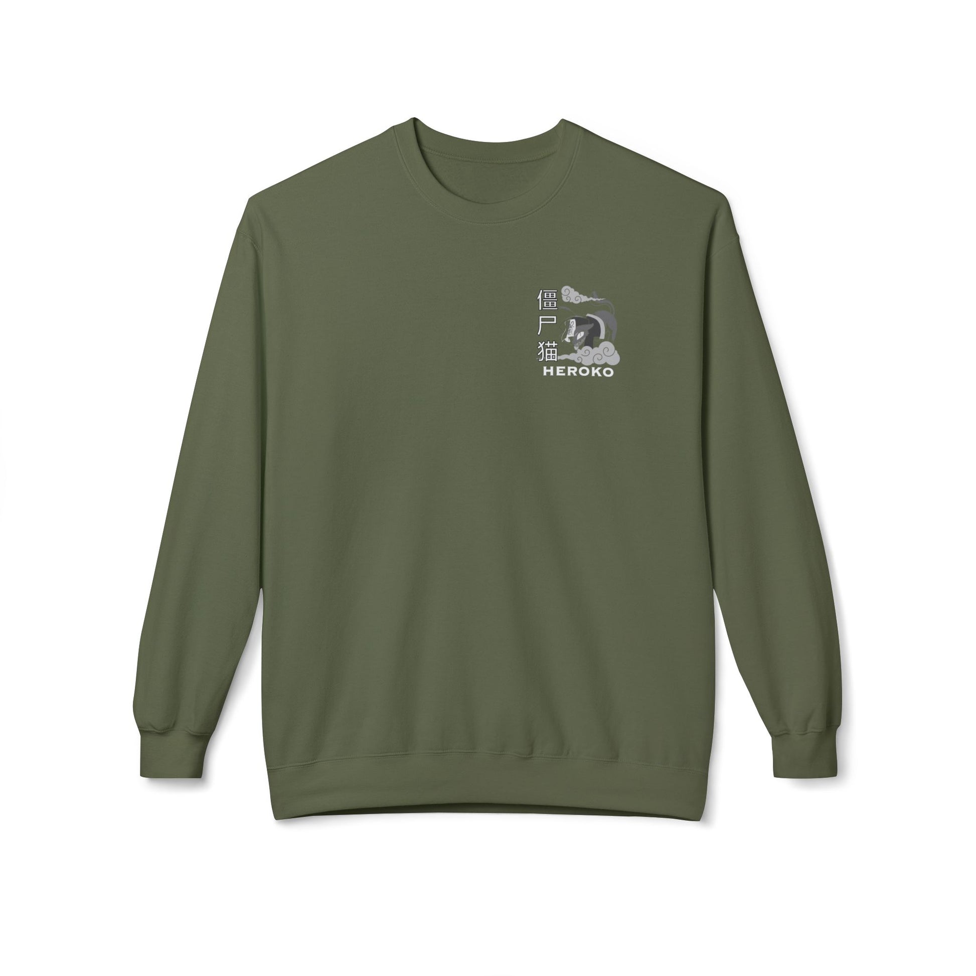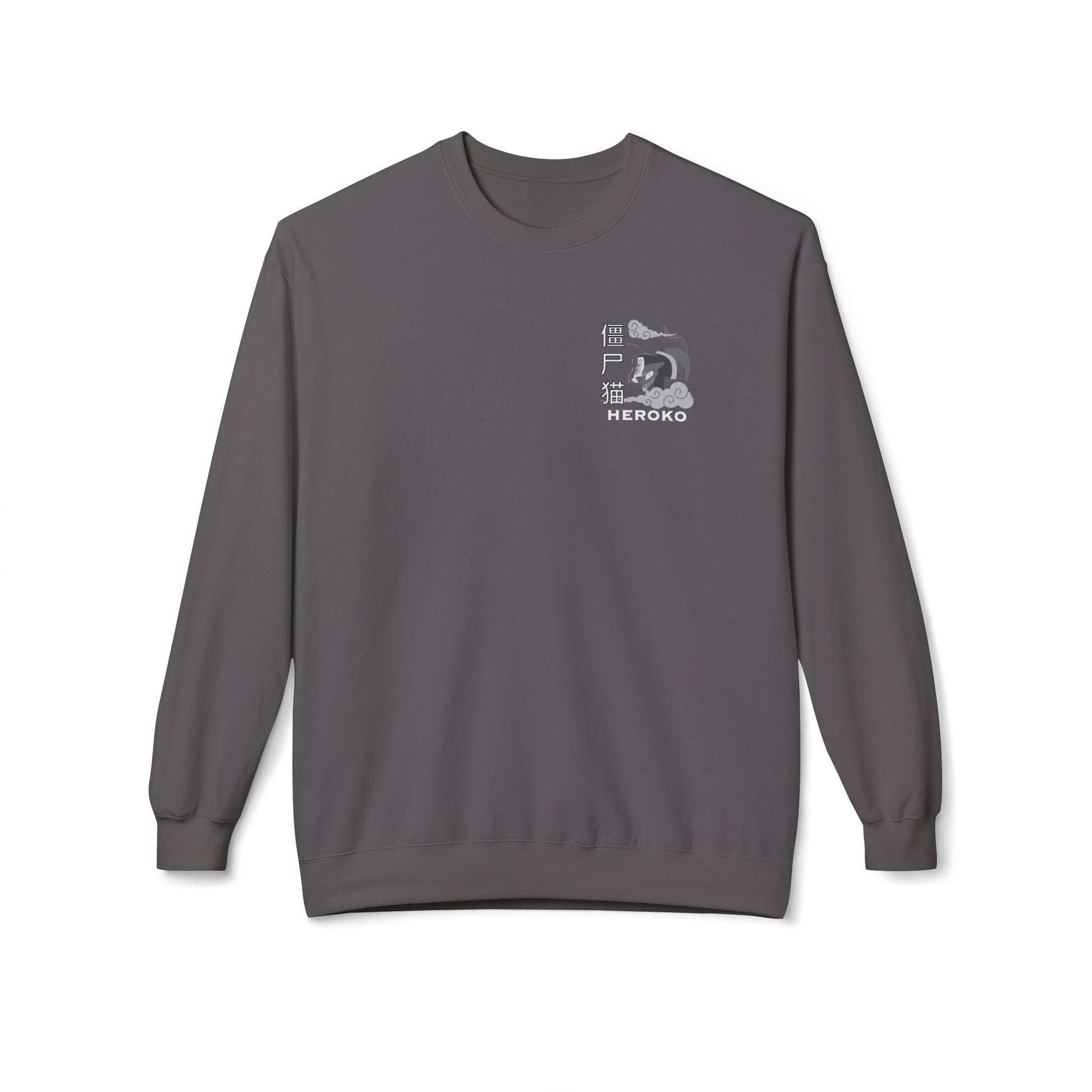 Spooky Unisex Crewneck Sweatshirt, Chinese Ancient Zombie Cat B&W Design