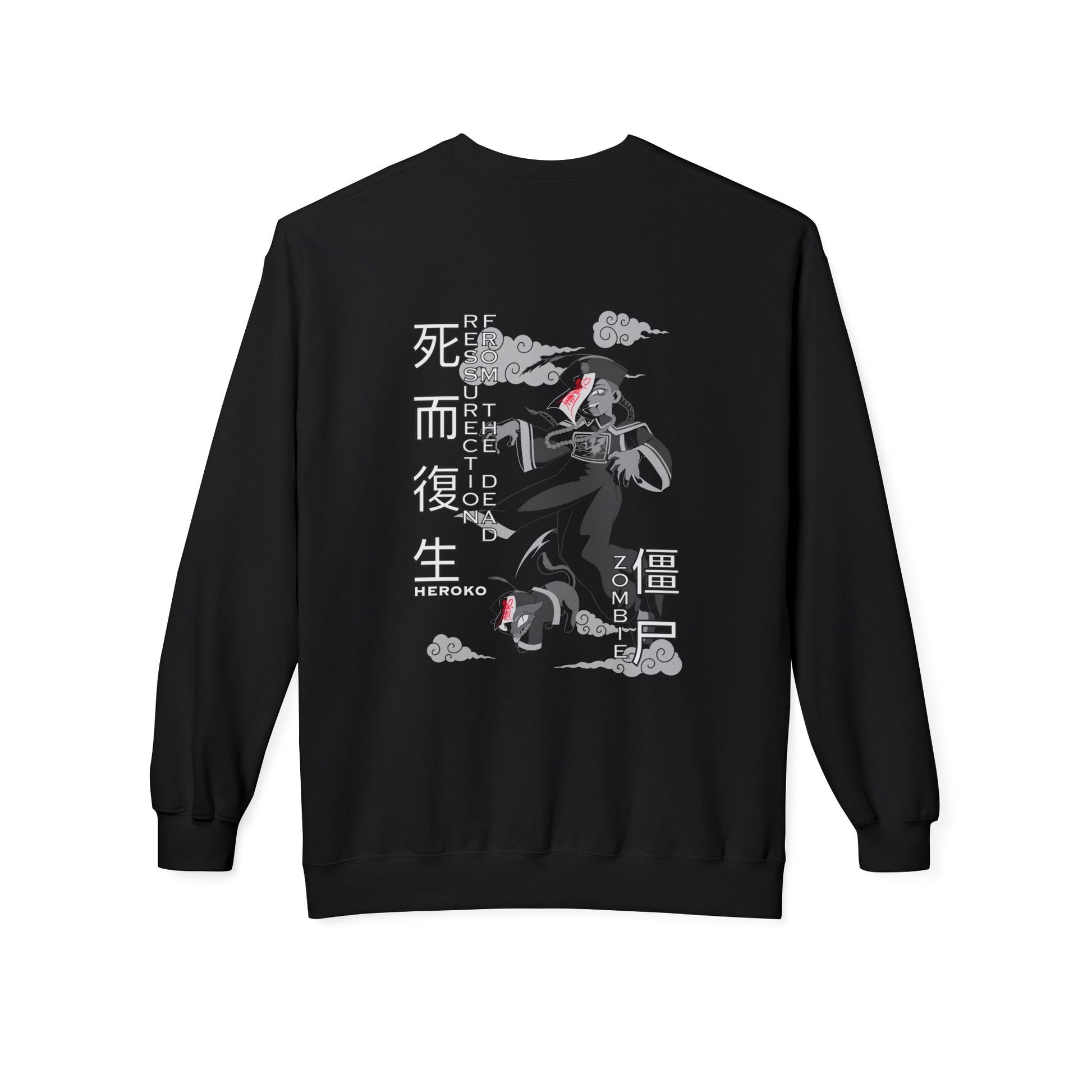 Spooky Unisex Crewneck Sweatshirt, Chinese Ancient Zombies B&W Design on Back