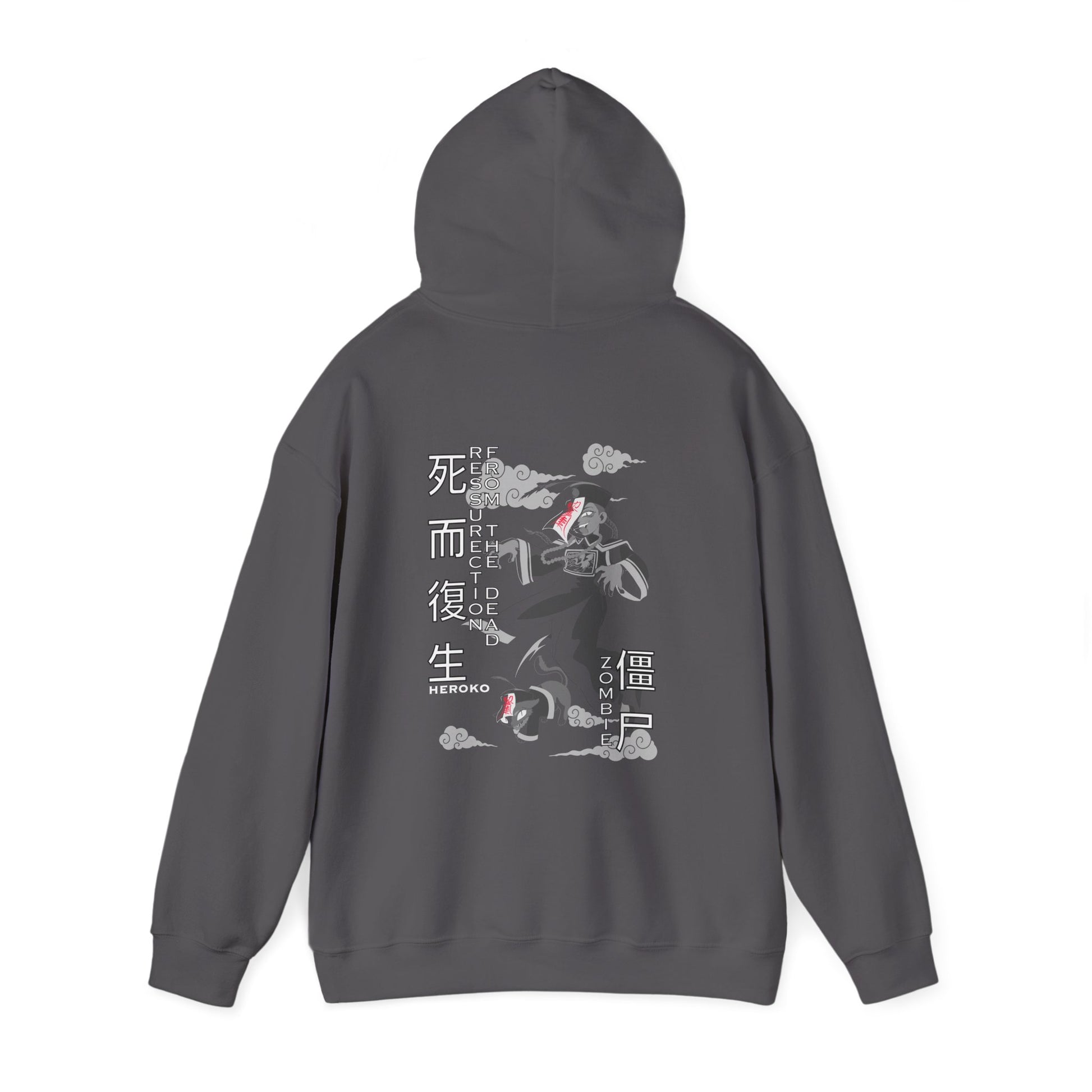 Spooky Unisex Hoodie, Chinese Ancient Zombies B&W Design on Back