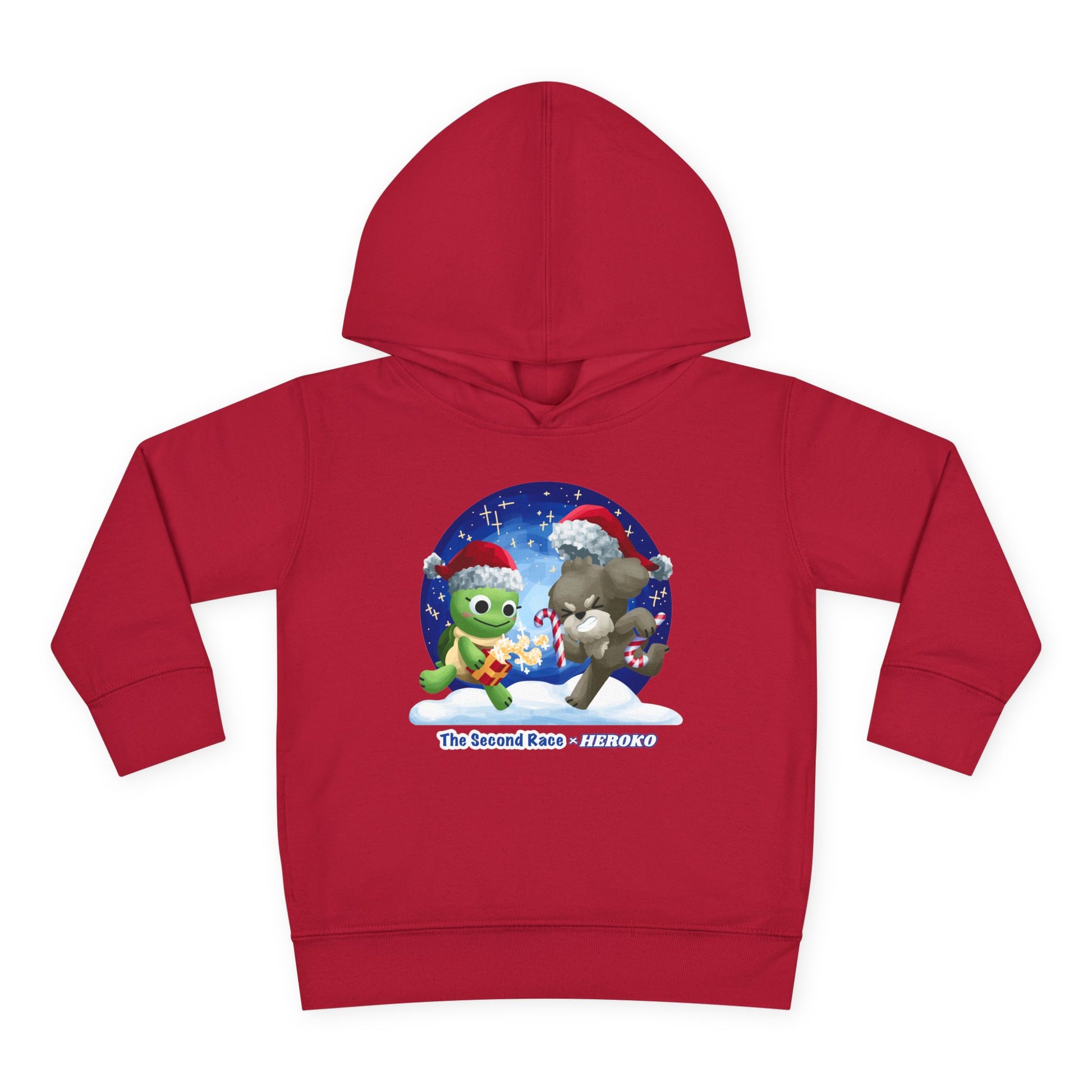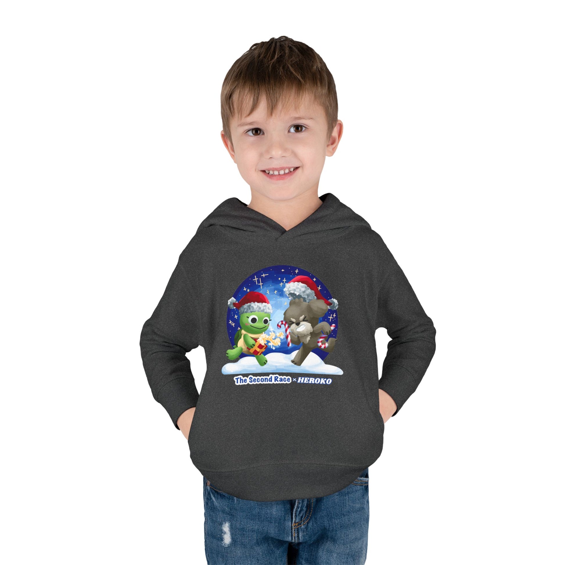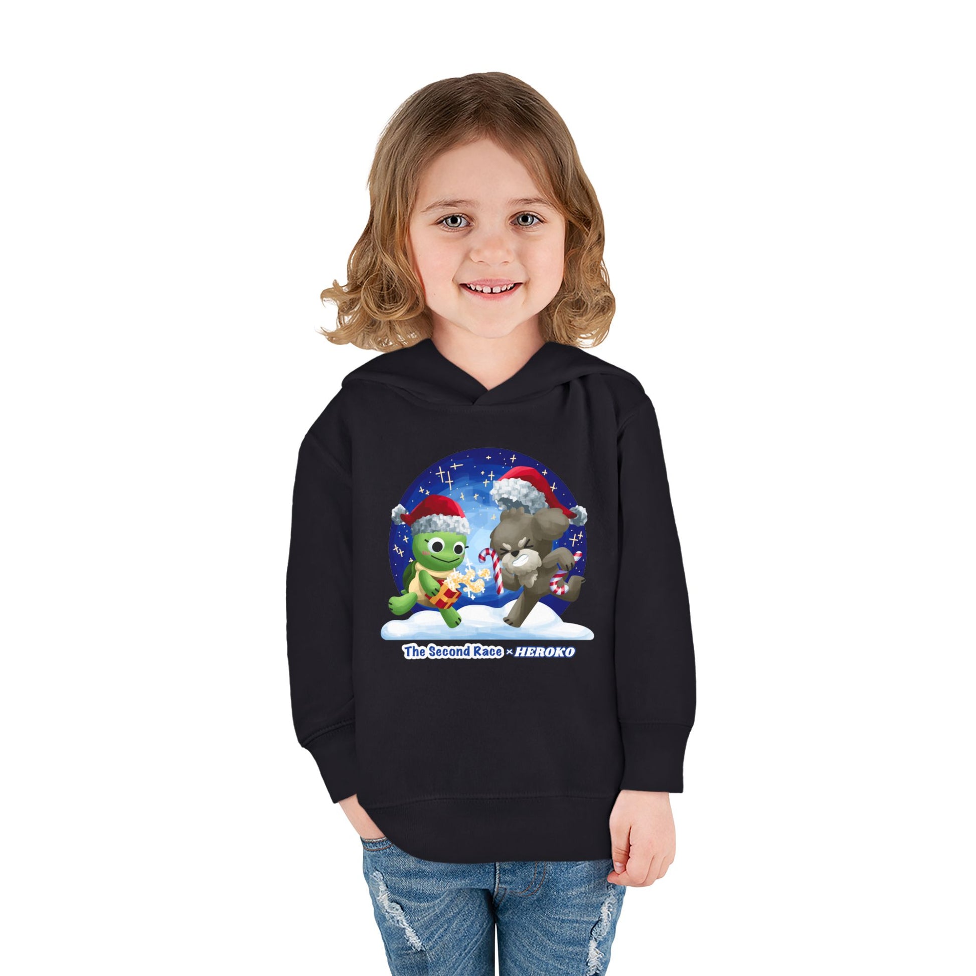 Toddler Pullover Hoodie - The Second Race: Turtle and Puppy Snow Globe Christmas Design