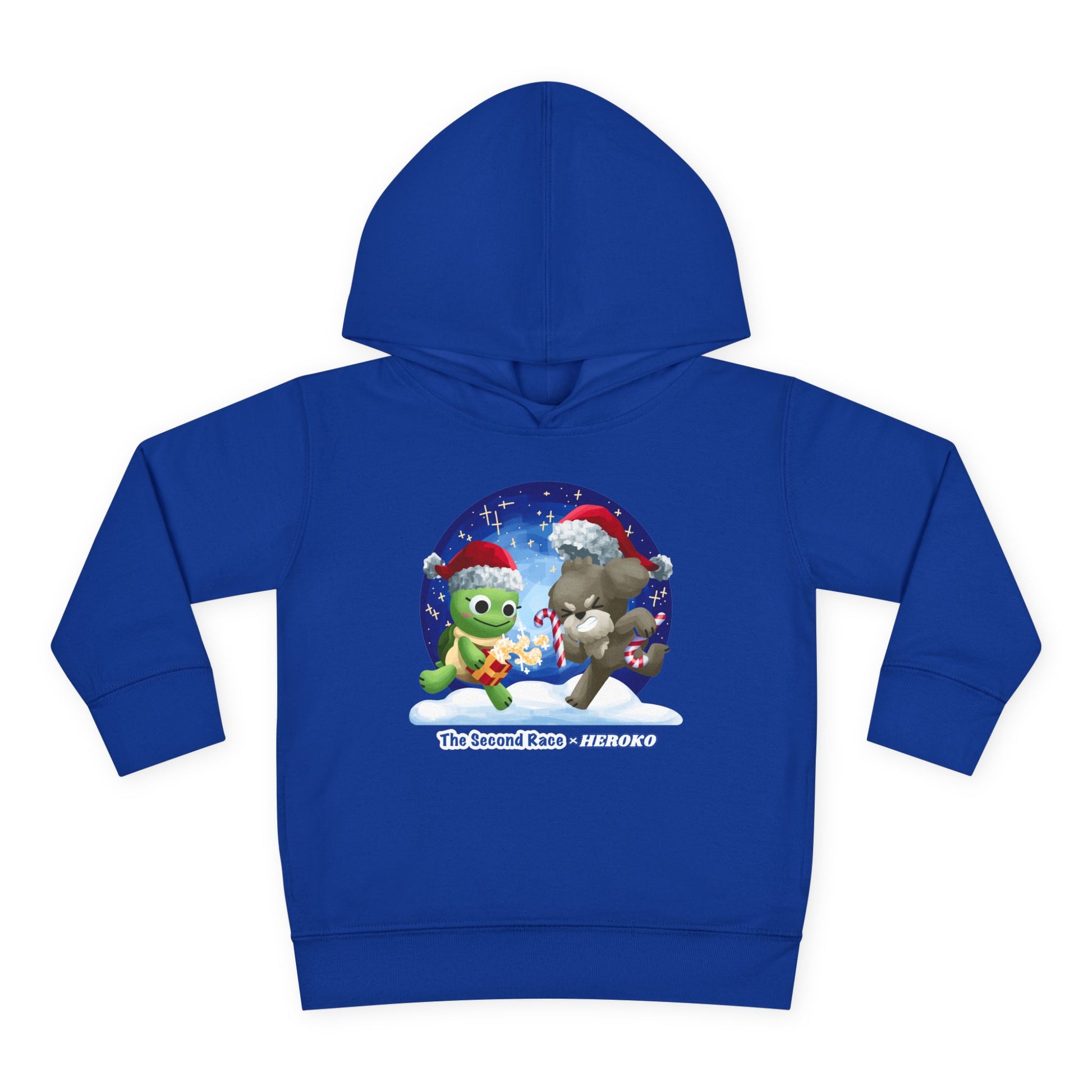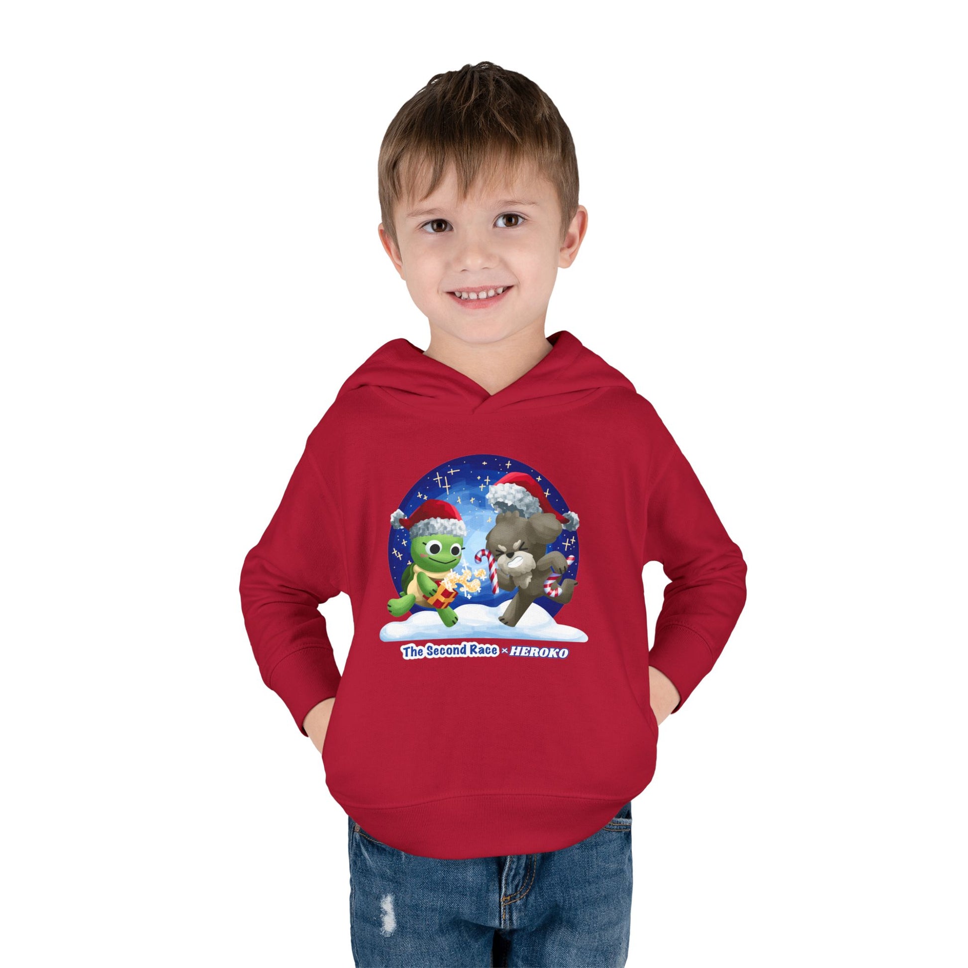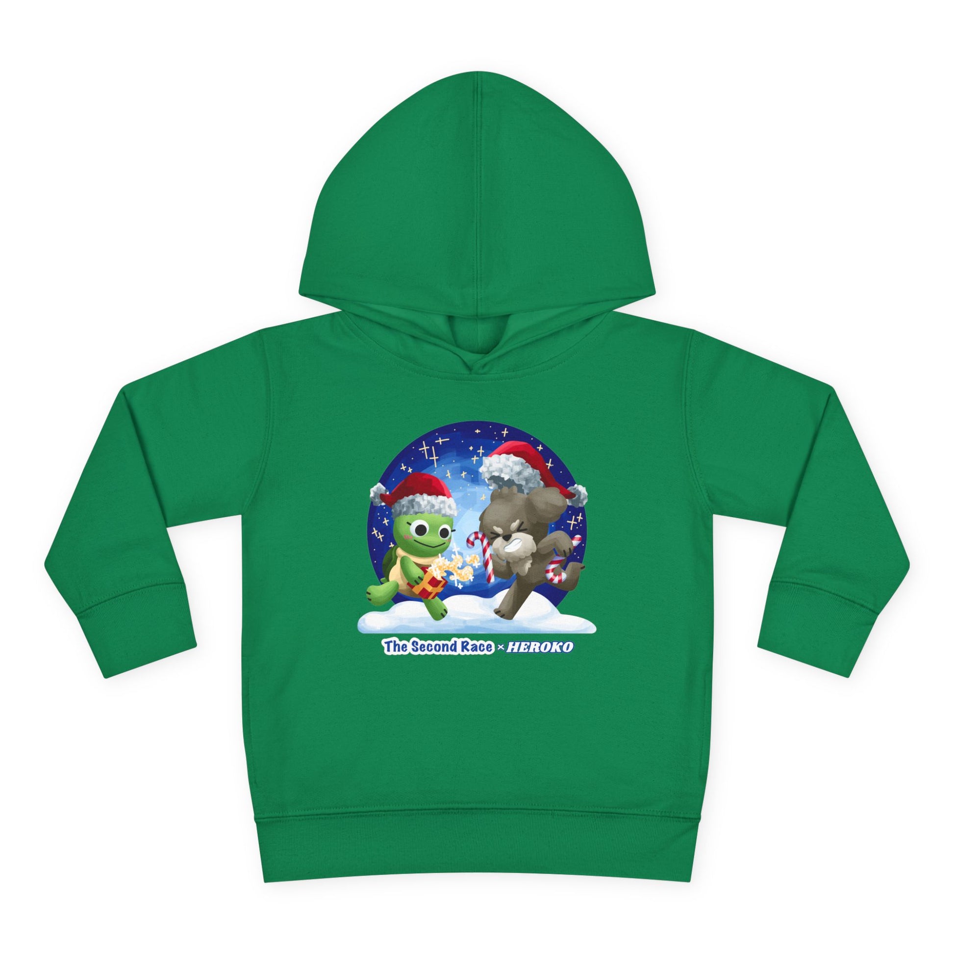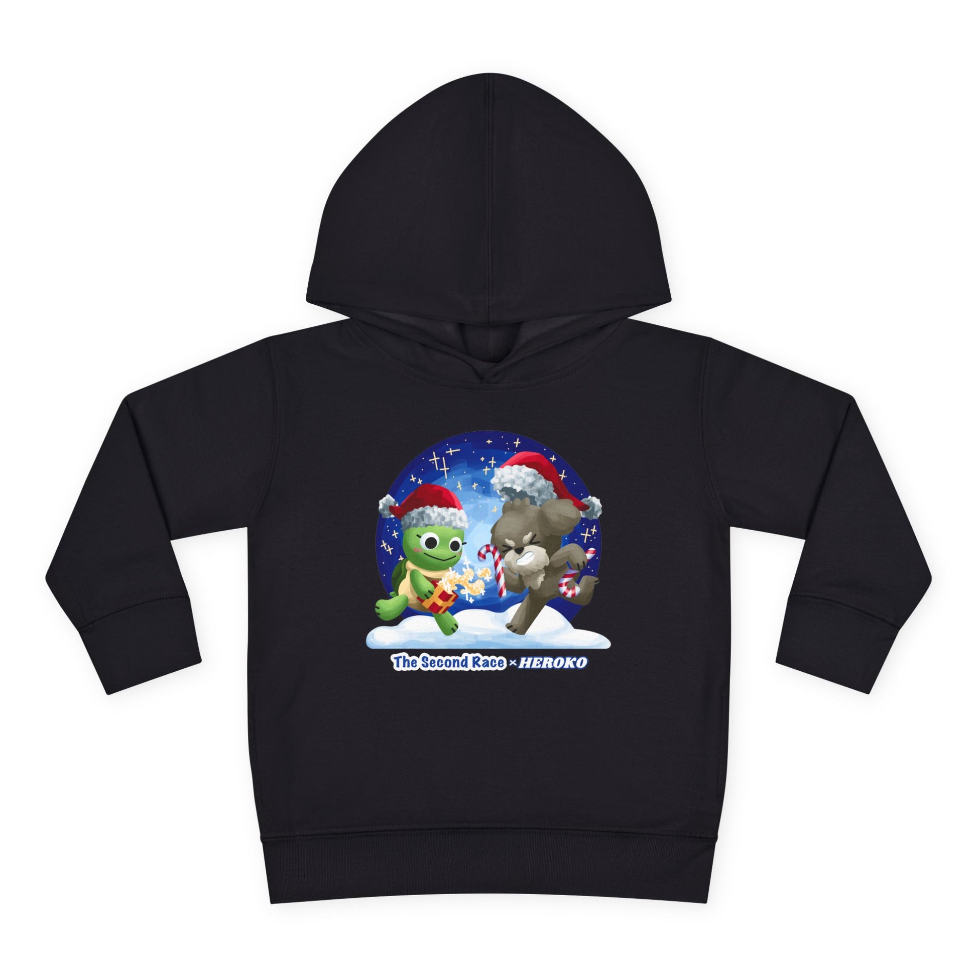 Toddler Pullover Hoodie - The Second Race: Turtle and Puppy Snow Globe Christmas Design